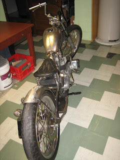 Alittle transmission surgery. After a new layshaft bushing and a couple bearings shes gonna be shifting better. The previous owner has the bottom /top end done and she runs like a champ , nice and smooth but the trans was just reinsatlled and it was missing some shifts. I made my own rear brake control , the bike is soo low nothing else would fit and it was run from the front hand control master cylinder. BAH! that just wasnt going to work for me. I like a spoolie but you need some good disc brakes in the back to run no front brake.